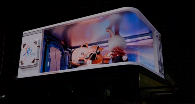 日前,由利亞德打造的廣州首個(gè)超8K戶外裸眼3d顯示屏在白云區(qū)“廣州設(shè)計(jì)之都”成功點(diǎn)亮!該屏幕面積約1000㎡,分辨率高達(dá)14240*4320,對(duì)比度為5000:1,搭配優(yōu)質(zhì)的創(chuàng)意內(nèi)容,呈現(xiàn)更精細(xì)、更震撼、色彩更豐富的視覺效果。大屏轉(zhuǎn)角處特別采用曲面平滑技術(shù),實(shí)現(xiàn)屏幕顯示面平滑過渡,無縫、無割裂,視覺容錯(cuò)無色差,完美呈現(xiàn)3D造型。